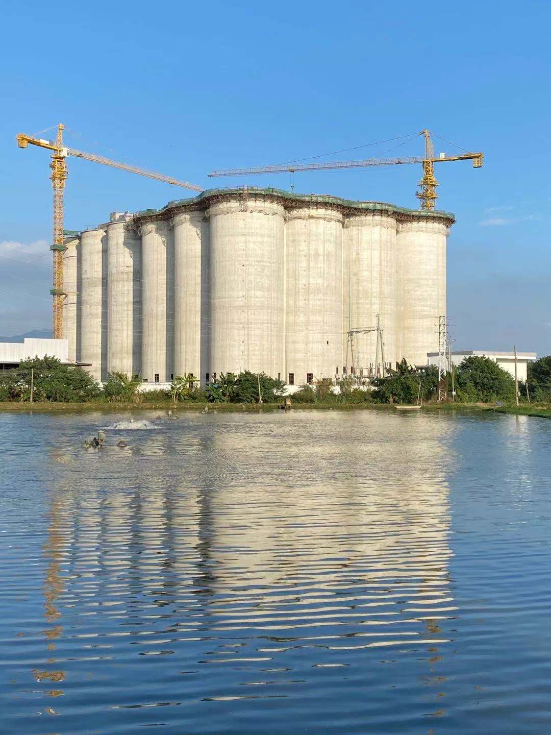 為克服疫情防控常態(tài)化等多種不利因帶來(lái)的建筑市場(chǎng)持續(xù)疲軟的困難,江蘇鎮(zhèn)江四建建設(shè)集團(tuán)充分發(fā)揮滑模核心技術(shù)優(yōu)勢(shì),主動(dòng)積極開(kāi)拓外埠糧油倉(cāng)儲(chǔ)物流建設(shè)市場(chǎng),收到良好成效。圖為集團(tuán)承建的位于肇慶市高要區(qū)大灣鎮(zhèn)的倉(cāng)儲(chǔ)物流項(xiàng)目,24只高40米、直徑15米,占地面積5400余平方米的大型筒倉(cāng)群,于日前順利滑升到頂?shù)膲延^情景。