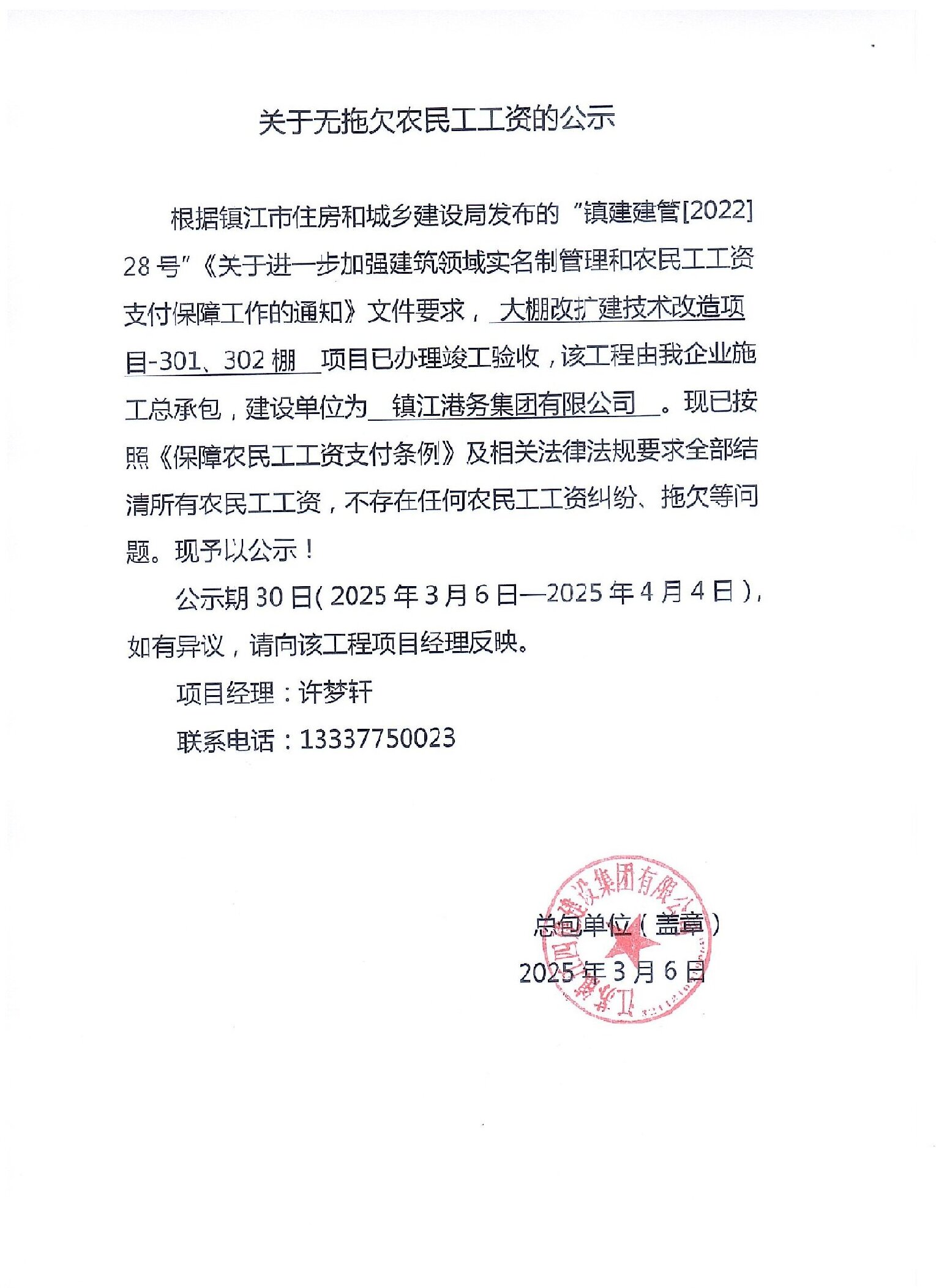 關(guān)于無(wú)拖欠農(nóng)民工工資的公示