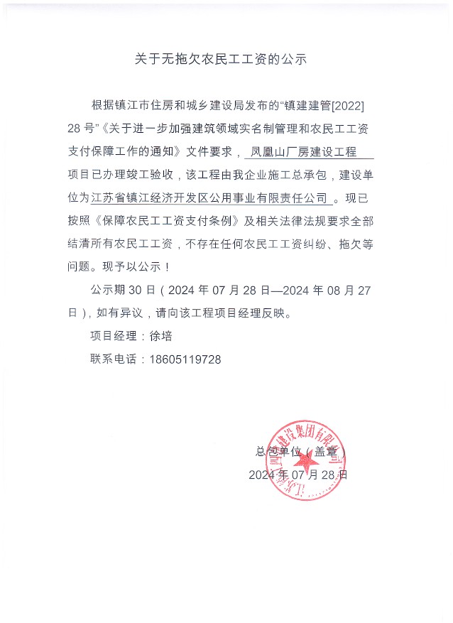 關(guān)于無拖欠農(nóng)民工工資的公示
